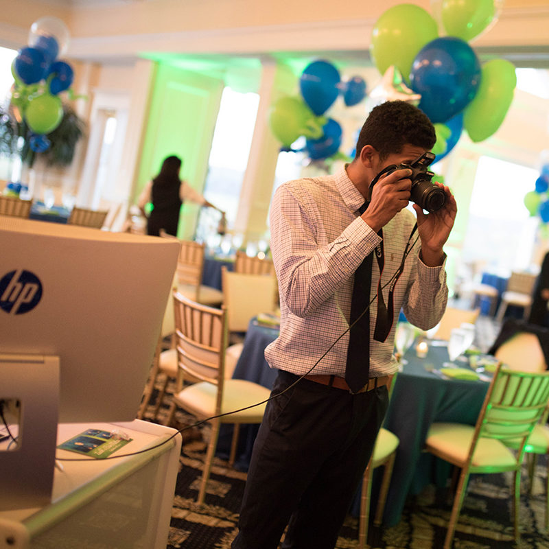 Our premium option, the live photo booth expands the booth experience into a photo studio with a life attendant. This option is perfect for private events such as Mitzvahs or Weddings where a wide range of ages are present.